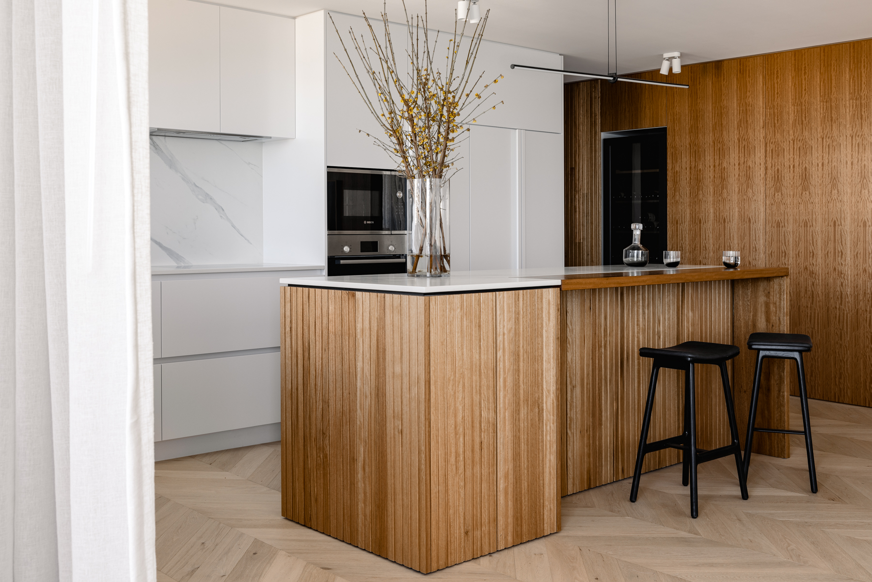 With generous ocean views across Main Beach, the two-bedroom, now two-bathroom apartment set with kitchen, living and balcony space creates a property which is perfect for weekends away to soak up time with family and friends. As avid entertainers, the couple wanted to create a modern ‘light and airy’ home on the coast to escape to from the hustle and bustle of their city life. The dated characteristics of the existing apartment brought the style of the space back down to the 1980’s era it was built in with the stucco ceiling and typical 80’s palette. The project was basically a full apartment gut from floor to ceiling, working in with minimal changes to wall + plumbing locations due to engineering restrictions. We’re super happy with how this transformation turned out!