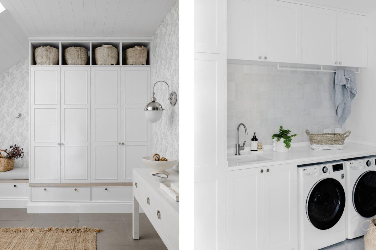 Set in the seaside neighbourhood of Southport on the Gold Coast, this home is a large two-storey home featuring a 6-car basement garage, multiple large living and dining areas, 6 bedrooms, 4.5 bathrooms and a generous master suite including walk-in robe and ensuite. From the beginning we knew this project was going to be a big one – with full concrete basement conversion, new mudroom, kitchen w/ scullery, family room, rumpus, sports bar, study and overall update to the paint, carpet + window coverings throughout. All while still paying homage to the original architecture and style of the home.