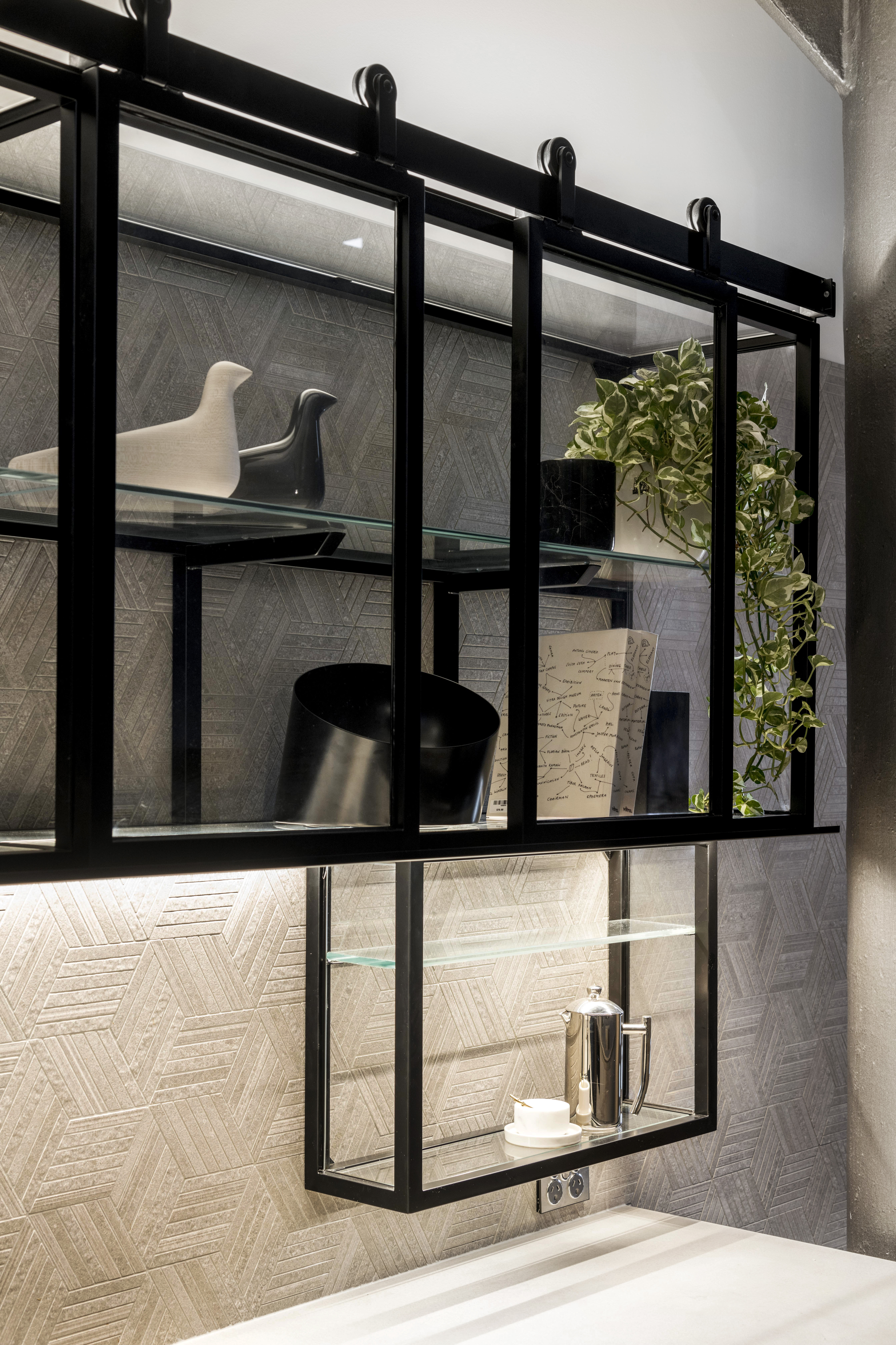 We chose many finishes for the space such as textural patterned tiles, large format Porcelain panels, and powder coated metals to create this desired feel. Working within the existing kitchen’s architectural footprint was the main challenge of the design, ensuring the layout worked effectively within the exposed structural beams and gave them intention in the space rather than divergence.